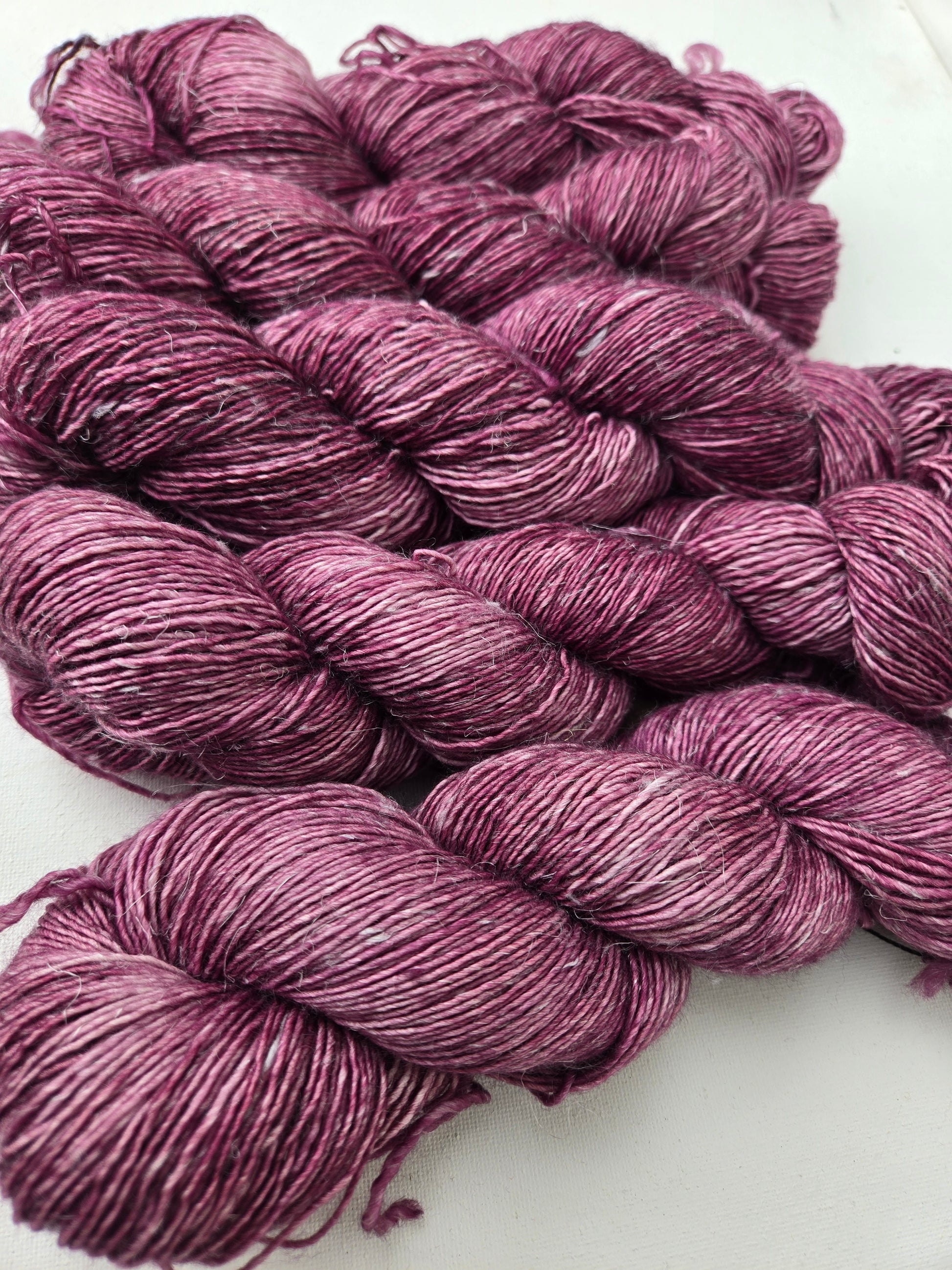 A soft single ply merino and linen blend yarn with texture and a gentle tweedy haze. Nylon free.